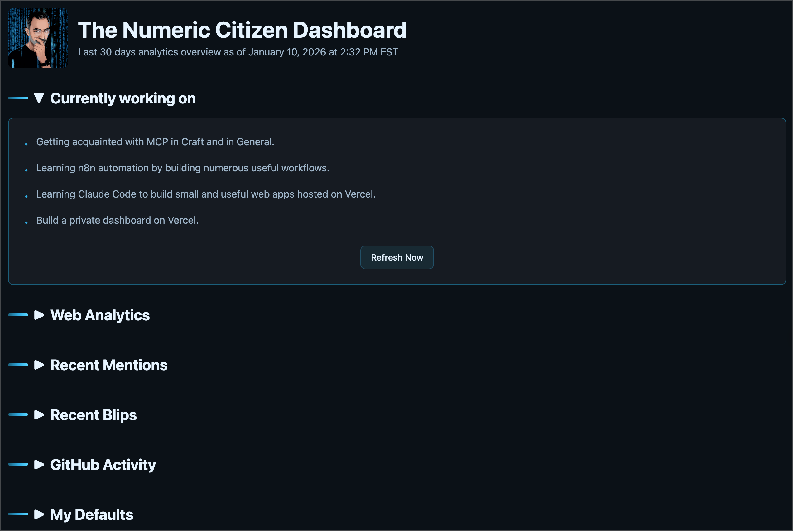 I’m making good progress on my personal dashboard idea. While people may criticize LLMs and enjoy coding for fun, for me, it opens up possibilities I couldn’t have imagined before.