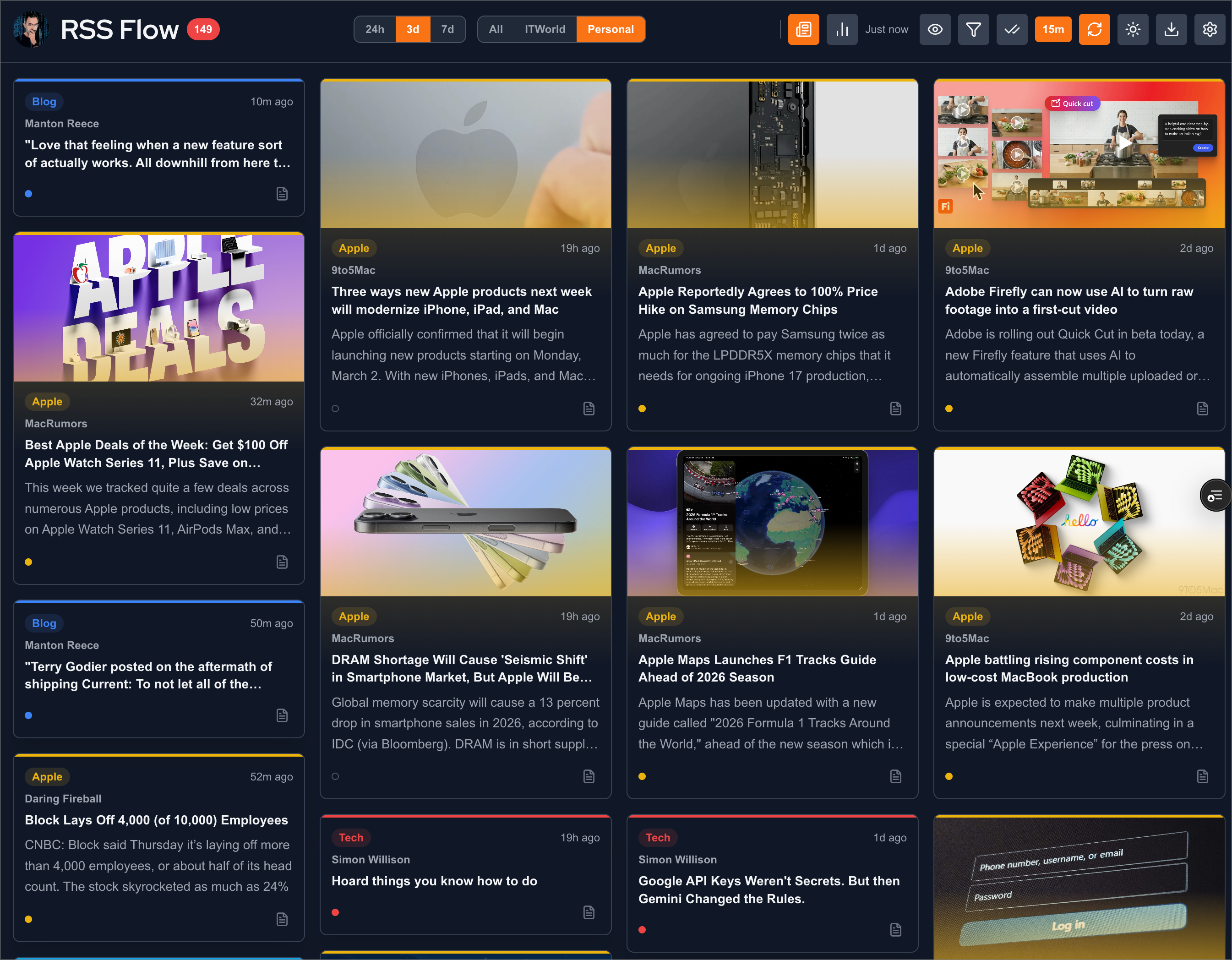 2026-02-27 ∞While waiting for Micro.blog next chapter, I’m playing with RSS feeds display strategies. This view is called “Journal”. Built using Claude Code and hosted on Vercel.